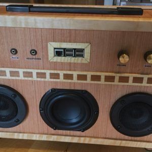Mike and John wanted to preserve the retro look of boomboxes from the ’80s and ’90s. "Think back to radio and TV consoles from the mid 20th century that were built of solid wood and proudly displayed in the living room", Mike says.