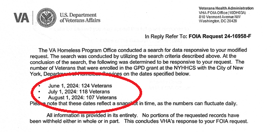 That is simply not true as shown by the attachments. What is also problematic, is that while NYC DHS is receiving this funding, VA-eligible veterans are sleeping in other shelters, on the subways, and in the streets while violent, drug and sex offenders sleep in their beds and steal their resources resulting in approximately $1 million unaccounted for. For more information on the GPD program, please visit: https://www.theforgottenveteran.org/gpd